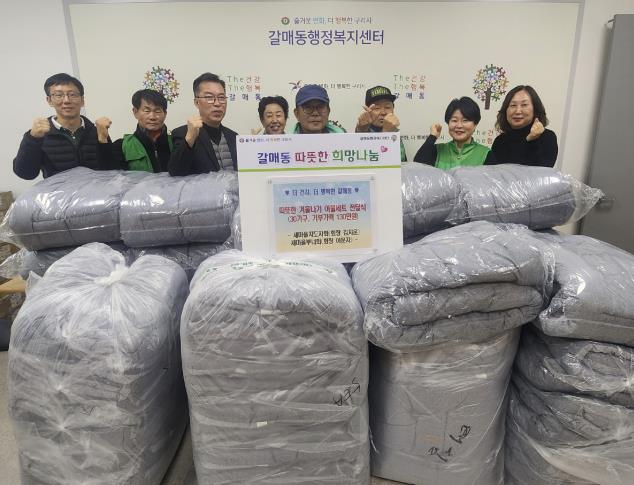 [무한뉴스=정승훈 기자] 구리시는 지난 3일 오후 4시 갈매동 행정복지센터에서 갈매동 새마을지도자회와 새마을부녀회가 에너지 취약계층 30가구에 130만 원 상당의 친환경 겨울 이불 30세트를 지원했다고 밝혔다.