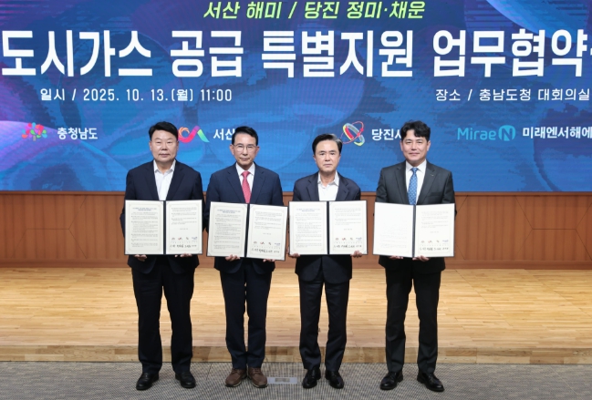 [무한뉴스=정민정 기자] 당진시는 13일 충남도청 대회의실에서 충청남도, 미래앤서해에너지와 함께 도시가스 공급 특별지원 업무협약(MOU)을 체결했다고 밝혔다.