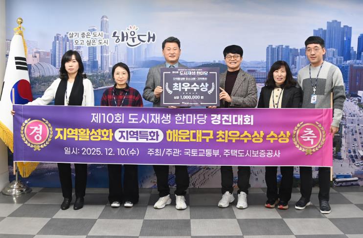 [무한뉴스=최진수 기자] 해운대구가 국토교통부 주최 ‘제10회 도시재생 한마당 경진대회’에서 지역활성화 우수사례 지역특화 분야 최우수상을 받았다.