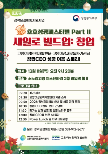 [무한뉴스=정승훈 기자] 고양여성새로일하기센터는 오는 11일 오전 9시 20분, 소노캄 고양에서 ‘호호 성공페스티벌 Part II – 새일로 빌드업 창업’을 개최한다고 밝혔다.
