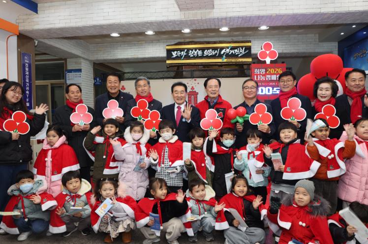 [무한뉴스=정민정 기자] 충북 진천군은 5일 진천군청 중앙현관에서 충북사회복지공동모금회와 함께 ‘희망2026나눔캠페인’ 사랑의 온도탑 제막식과 현장순회모금 행사를 개최했다.
