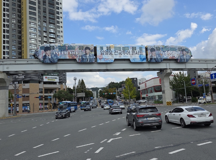 [무한뉴스=최진수 기자] 대구도시철도 3호선에서 운행 중인 ‘임영웅 전국투어 콘서트’ 랩핑 광고 열차가 세련된 디자인과 높은 시인성으로 시민과 팬들의 눈길을 사로잡고 있다.