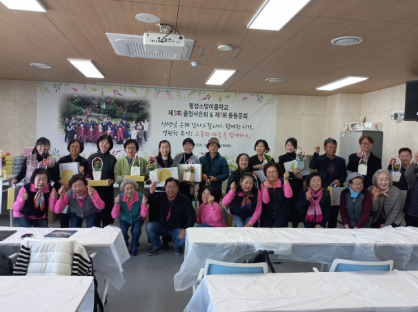 [무한뉴스=정민정 기자] 횡성군은 성인 문해 학습장인 횡성소망이룸학교의 제3회 졸업사은회 및 제1회 총동문회를 28일 평생학습관 5층 다목적강당에서 개최했다.