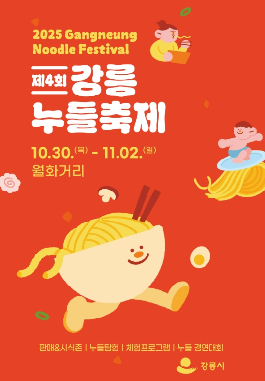 [무한뉴스=정민정 기자] 강릉시는 오는 10월 30일 목요일부터 11월 2일 일요일까지 4일간, 강릉의 대표 면 요리를 즐기고 다채로운 볼거리와 즐길 거리를 통해 강릉의 다양한 매력을 만끽할 수 있는‘2025 제4회 강릉 누들 축제’를 개최한다.