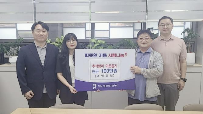 [무한뉴스=양현명 기자] 지난 26일, ㈜대일실업은 추석 명절을 맞아 어려운 이웃을 위해 사용해 달라며 현금 1,000,000원을 지동 행정복지센터에 기탁했다.