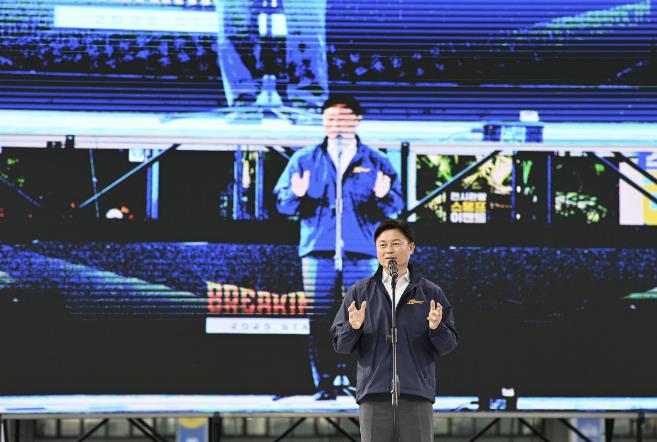 | ▲ 조용익 부천시장이 ‘제10회 부천국제브레이킹대회(BIBC)’에서 인사말을 하고 있다. |