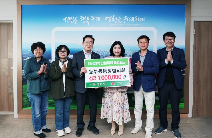 또한 동부동 통장협의회에서도 산불피해로 어려움을 겪고 있는 이들을 돕기 위해 성금 100만원을 기부하며 따뜻한 나눔의 뜻을 전했다.