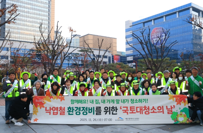 [무한뉴스=최진수 기자] 대구 수성구는 26일 대구광역시 교육청 인근에서 겨울철 낙엽 정비를 위한 ‘국토대청소의 날’ 행사를 개최했다.