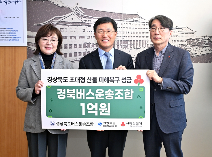 경상북도버스운송사업조합은 도내 5개 시군에 발생한 산불 피해복구를 위해 3일 경북도청을 방문해 경북사회복지공동모금회에 성금 1억원을 기탁했다. 성금은 초대형 산불로 큰 피해를 본 이재민들의 빠른 일상 회복을 돕기 위해 사용된다.