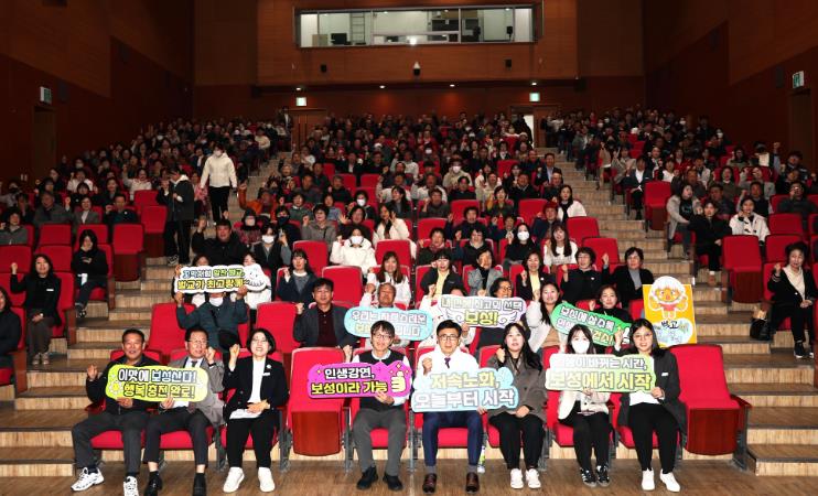 | ▲ 보성군민은 오늘부터 건강하고 행복한 저속노화 시작_‘저속노화 오늘부터 시작’이라는 퍼포먼스를 하고 있다 |