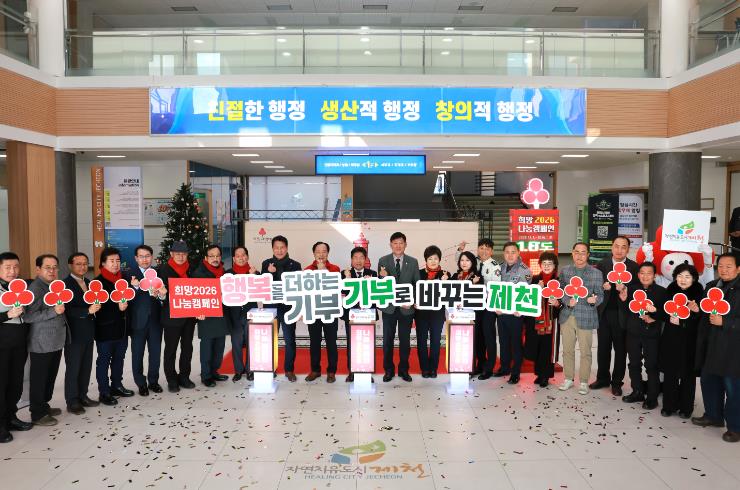 [무한뉴스=정민정 기자] 제천시의회는 8일 제천시청 로비에서 열린 ‘희망2026나눔캠페인 사랑의 온도탑’ 제막식에 참석해 성금 584,000원을 기부했다.