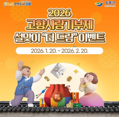 [무한뉴스=정민정 기자] 장흥군은 설 명절을 앞두고 고향사랑기부제 활성화를 위해 1월 20일부터 2월 20일까지 ‘2026 설맞이 고향사랑기부제 더 드림 이벤트’를 진행한다.