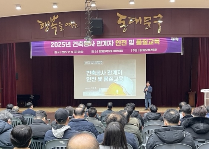 동대문구는 지난 19일 구청 2층 다목적강당에서 '2025년 건축공사 관계자 안전 및 품질 교육'을 열고, 관내 민간 건축공사장 현장대리인·감리자·안전관리자 등 공사 관계자와 담당 공무원, 동대문건축사회 관계자 등 130여 명을 대상으로 현장 중심 교육을 진행했다.
