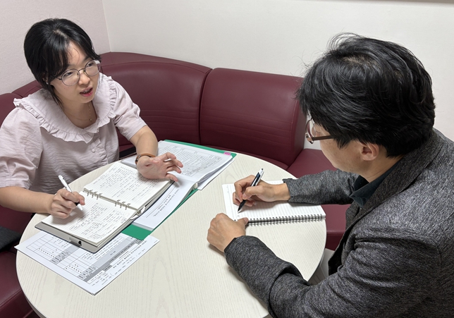 | ▲ 인천시사회서비스원 소속 시설 운영 담당자가 지난 17일 추강엽 인천시피해장애아동쉼터 센터장과 인권상황 목록을 점검하고 있다. |