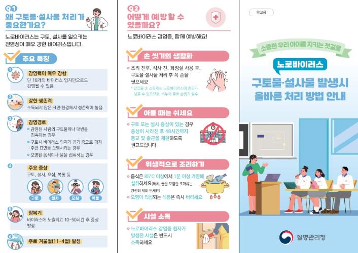 노로바이러스는 겨울철에 주로 유행하는 급성 위장관 감염증으로, 감염 시 구토, 설사, 복통 등의 증상이 나타나며 전염력이 매우 강해 집단 발생으로 이어질 가능성이 높다.