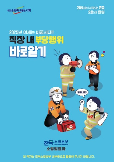 [무한뉴스=정민정 기자] 전북특별자치도소방본부는 직장 내 부당행위를 예방하고, 구성원 간 소통과 이해가 공존하는 건강한 직장문화를 만들기 위해 ‘소통 길잡이! 직장 내 부당행위 바로 알기’ 책자를 제작해 배포했다고 2일 밝혔다.