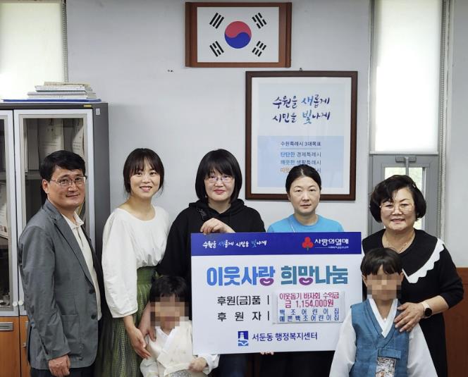 | ▲ 백조 및 예쁜백조 어린이집, 수원시 권선구 서둔동 이웃 위해 기부금 전달 |
