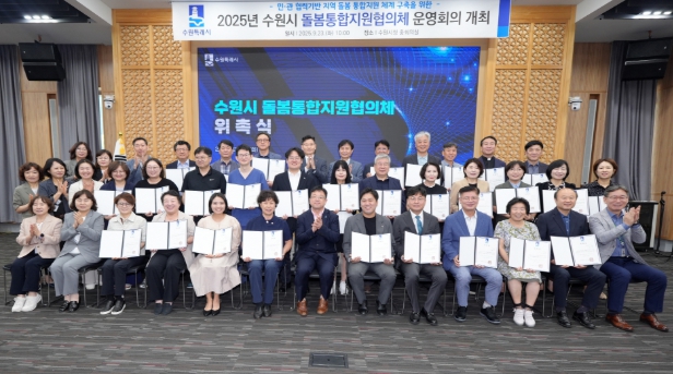 수원시는 23일 시청 중회의실에서 ‘수원시 돌봄통합지원협의체’ 위촉식을 열었다. 2024년 3월 제정된 ‘돌봄통합지원법’에 따라 기존 민·관·학 통합돌봄추진위원회를 통합·개편해 협의체를 구성했다.