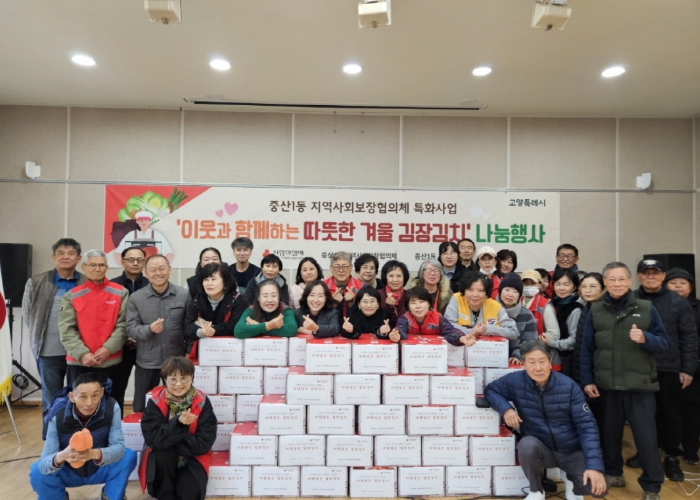[무한뉴스=정승훈 기자] 고양특례시 일산동구 중산1동 지역사회보장협의체는 지난 21일, 취약계층 70가구에 김장김치를 전달하는‘사랑담은 김장김치 나눔’ 행사를 진행했다고 밝혔다.