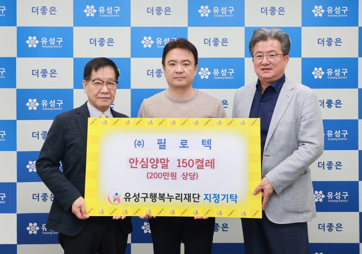 [무한뉴스=정민정 기자] 대전 유성구는 14일 ㈜필로텍(대표 이영민)이 유성구행복누리재단에 ‘안심양말’ 150켤레(총 200만 원 상당)를 기탁했다고 밝혔다.