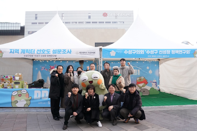 [무한뉴스=최진수 기자] 수성구의회 의원연구단체 ‘수성구 신 성장 정책연구회’는 지난 19일 동대구역 광장에서 ‘맞춤형 캐릭터 산업 육성 전략 수립’을 목적으로 대구 시민 대상 설문조사를 실시했다.
