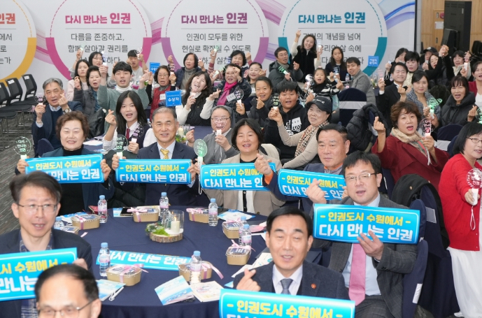 [무한뉴스=양현명 기자] 수원특례시는 10일 시청 중회의실에서 ‘세계인권선언의 날(1948년 12월 10일) 77주년 기념식’을 열고, 인권의 가치를 되새겼다.