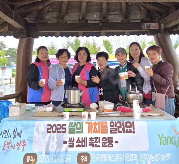[무한뉴스=정승훈 기자] 한국생활개선양주시연합회가 지난 10일 양주시 대표 관광명소인 나리농원에서 ‘우리쌀 사랑 나눔 시식행사’를 열고 쌀 소비 촉진과 지역 농산물 홍보에 나섰다.