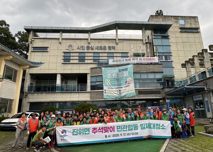 [무한뉴스=정승훈 기자] 평택시 진위면 행정복지센터는 17일 진위면 12개 단체협의회 단체장과 회원, 공무원 등 80여 명과 함께 추석맞이 민관 합동 일제 대청소를 진행했다.