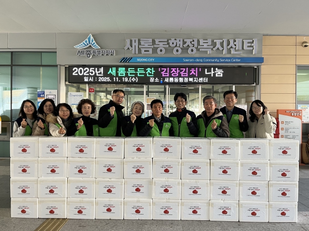 강신우 지사협민간위원장은 “새롬동 주민들의 따뜻한 관심과 도움으로 4년째 김장 나눔 행사를 이어가고 있다”며 “김장김치를 전달받은 이웃들이 마음 따뜻한 겨울을 보내길 바란다”고 말했다.