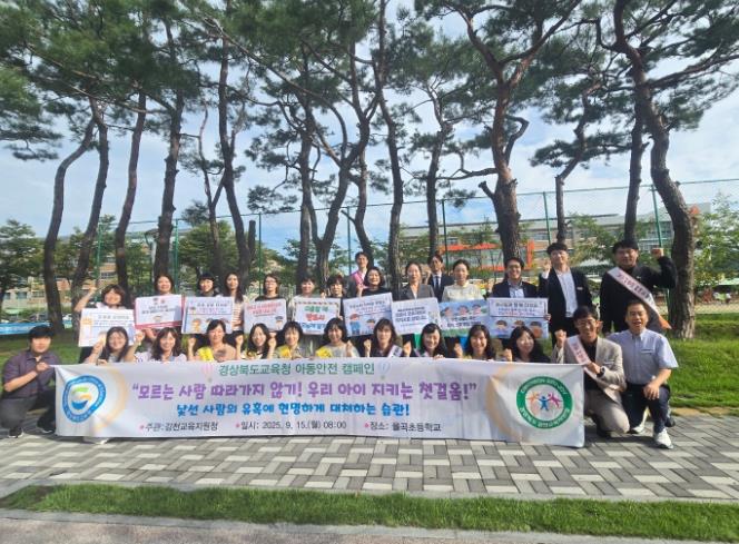 [무한뉴스=최진수 기자] 김천교육지원청은 2025년 9월 15일 월요일 오전 8시부터 율곡초등학교에서 '안전한 등굣길 조성을 위한 범죄 예방 캠페인'을 진행했다.