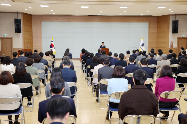 [무한뉴스=정승훈 기자] 윤건영 충청북도교육감이 3일 오전, 화합관에서 11월 월례조회를 개최했다.