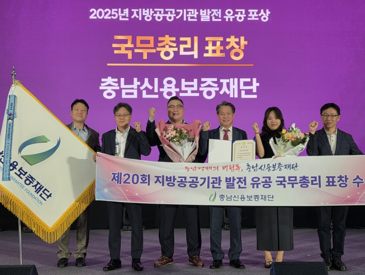 [무한뉴스=정민정 기자] 충남신용보증재단은 9월 18일 대전컨벤션센터 제2전시장에서 열린 '2025 지역경제 혁신박람회 및 제20회 지방공공기관의 날' 기념식에서 '지방공공기관 발전 유공' 국무총리 기관표창을 수상했다고 밝혔다.