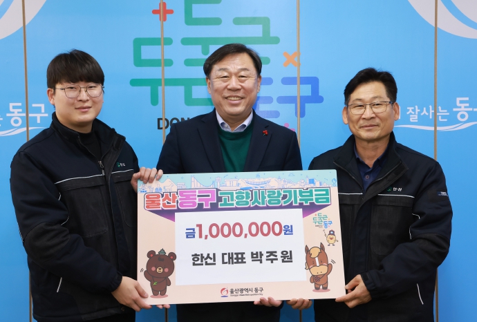 [무한뉴스=최진수 기자] 울산 동구는 12월 2일(화) 오전 10시 한신 박주원 대표가 김종훈 동구청장을 만나 고향사랑기부금 100만 원을 기탁했다.