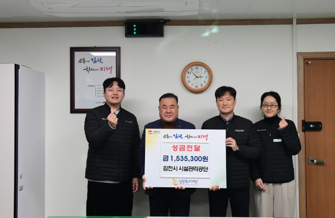 [무한뉴스=최진수 기자] 김천복지재단은 지난 26일, 김천시 시설관리공단으로부터 성금 1,535,300원을 전달받았다고 밝혔다.