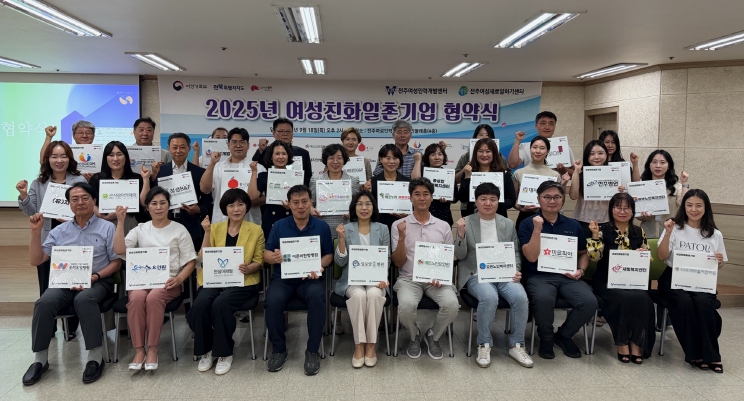 시는 18일 전주여성새로일하기센터(관장 양희옥) 민들레홀에서 여성 인력을 적극 채용하고 좋은 일터 만들기에 앞장서 온 △미르피아여성병원 △(유)비타민G&P △㈜한실어패럴 등 31개 기업과 ‘2025년 전주시 여성친화 일촌기업 협약식’을 가졌다.