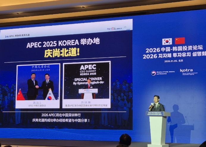 [무한뉴스=최진수 기자] 경상북도는 6일 중국 베이징에서 열린 산업통상부 주관 지자체 투자유치 설명회에 참가해 중국 기업과 투자자를 대상으로 경상북도의 투자환경과 미래 협력 전략을 집중적으로 소개했다.
