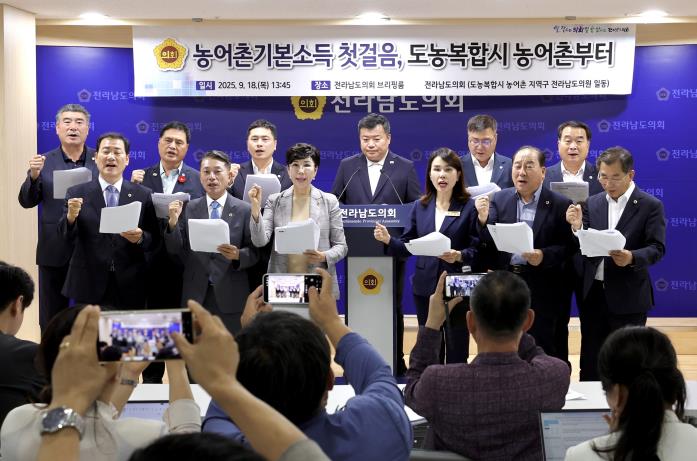 [무한뉴스=정민정 기자] 전라남도의회 도농복합시 농어촌 지역구 도의원들이 9월 18일, 『도농복합지역 농어촌(읍면)에 대한 차별 해소를 위한 법령·제도 개선 촉구 성명서』를 공동으로 발표했다.