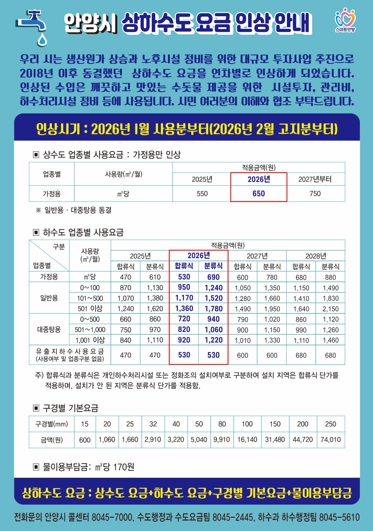 | ▲ 안양시, 상하수도 요금 인상…2026년 2월 고지분부터 적용 |