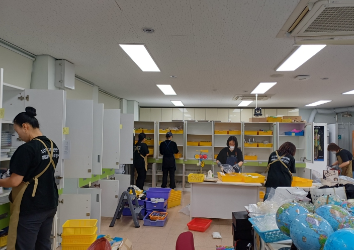 이날 현장에는 서산교육지원청 학교지원센터 특별실 정리지원단 8명이 참여하여 과학실 전반에 대한 정리 및 환경 개선 활동을 진행했다.