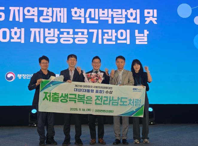 [무한뉴스=정민정 기자] 전라남도는 18일 제21회 대한민국 지방자치경영대전에서 저출생 극복 성과를 인정받아 대통령 표창을 수상했다고 밝혔다.