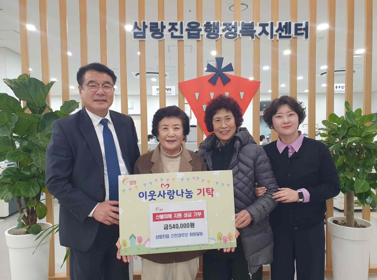 3일 삼랑진읍 신천경로당 회원 18명이 자발적으로 모금한 성금 54만원을 산불 피해 지역의 복구와 이재민 지원에 써달라는 뜻을 담아 삼랑진 행정복지센터에 전달했다. 김정희 신천경로당 회장은“작은 정성이지만 피해 복구에 보탬이 되기를 바란다”라고 말했다.