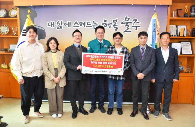 울주군은 이날 군청 소회의실에서 이순걸 군수와 ㈜UBC울산방송 ‘전선민의 유쾌한 데이트’ 김태훈 편성제작국장 등 관계자들이 참석한 가운데 성금 전달식을 가졌다.