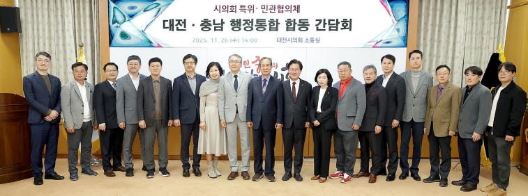 [무한뉴스=정민정 기자] 대전충남 행정통합 민관협의체는 26일 대전시의회 소통실에서 대전광역시의회 대전충남 행정통합 특별위원회과 합동 간담회를 열었다.
