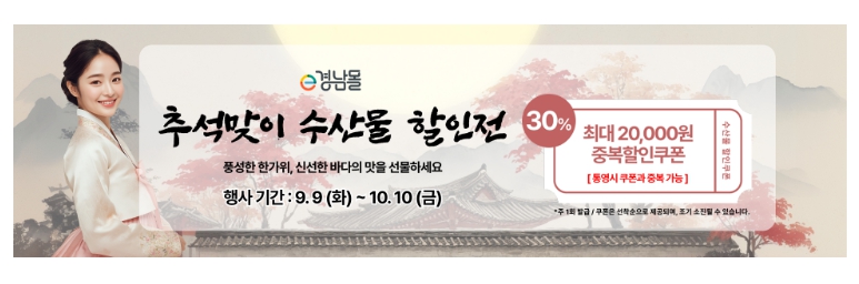 [무한뉴스=최진수 기자] 경상남도는 추석 명절, 도내 우수 수산물 소비를 촉진하고 어업인 소득을 높이기 위해 온오프라인 소비 촉진 행사를 개최한다. 이번 행사는 온라인몰 특별 할인 기획전과 전통시장 온누리 상품권 환급행사를 중심으로 진행하며, 다채로운 혜택을 제공한다.