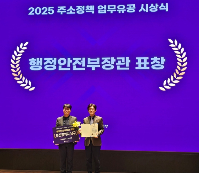 [무한뉴스=최진수 기자] 부산광역시 남구는 행정안전부가 주관한 ‘2025년 주소정책 업무 유공’ 분야에서 우수 기관으로 선정돼 행정안전부 장관 표창을 수상하고, 특별교부세 4천만 원을 확보했다고 밝혔다.