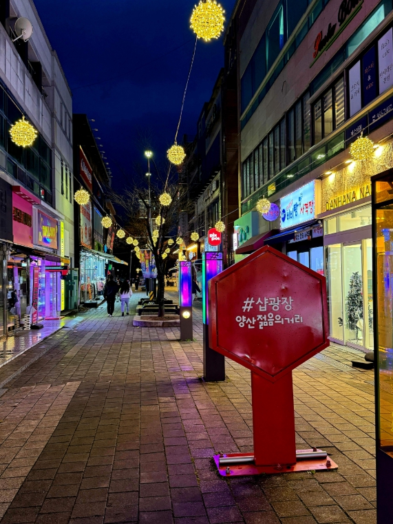 [무한뉴스=최진수 기자] 양산시는 지난 23일 경상남도 제1호 소상공인 특화거리인 양산젊음의거리 경관조명 설치사업이 마무리됐다고 밝혔다.