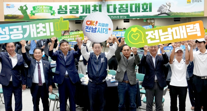 [무한뉴스=정민정 기자] 전라남도는 22일 도청에서 김영록 전남도지사, 서남권 6개 시군 음식·숙박·관광업계 대표, 함평골프고 학생, 체육관계자 등 200여 명이 참석한 가운데 LPGA BMW 레이디스 챔피언십 성공개최를 위한 다짐대회를 열었다.