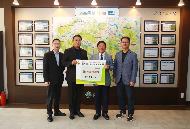 | ▲ ㈜건우기업, 곡성군 교육사업 지원하기 위해 곡성군미래교육재단에 5백만 원 기탁 |