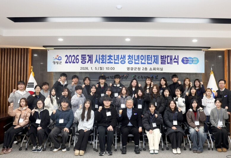 [무한뉴스=정민정 기자] 영광군은 1월 5일 영광군청 소회의실에서 2026년 동계 사회초년생 청년인턴제 발대식을 개최하고, 참여 대학생들과 함께 근로계약서 작성 및 안전·친절교육 등을 실시했다.