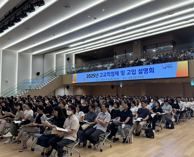 ▲ 지난 2일, 광진구청 대강당에서 열린 ‘2025년 고교학점제 및 고입 설명회’ 모습 |